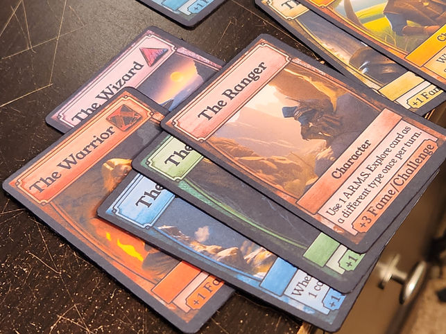 Get ready for ARMS - Fame for the Taking: a fantasy adventure competition where the most famous adventurer wins. Collect stats and complete feats to build your fame, and spend the gold you earn along the way to gain an edge over your rivals. Made for 2-6 players and takes 45-60 minutes.